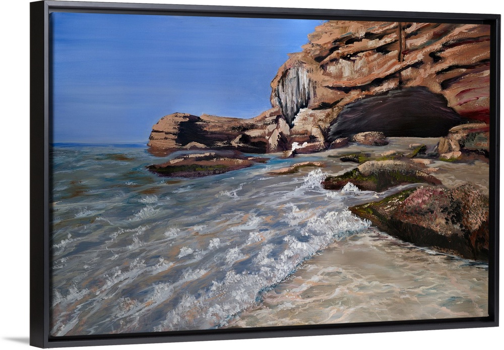 <p>Painting of the caves beach in subdued colors painted to perpetuate the artist's fond memories of the area.</p>