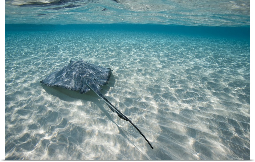 <p>Cayman Islands, Grand Cayman Island, Underwater view of Southern Stingray (Dasyatis americana) in shallow water at Stingray City in Caribbean Sea</p>