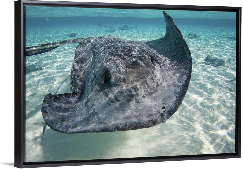 <p>Cayman Islands, Grand Cayman Island, Underwater view of Southern Stingray (Dasyatis americana) in shallow water at Stingray City in Caribbean Sea</p>