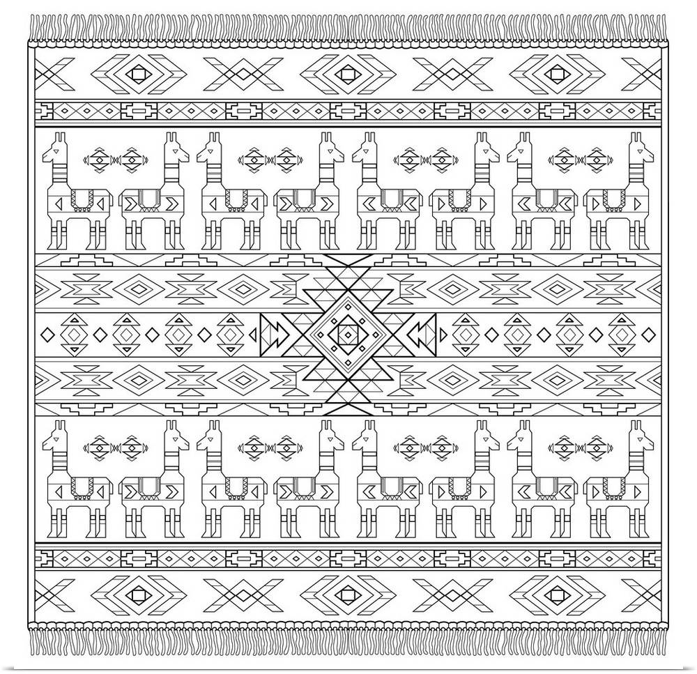 <p>Black and white line art Egyptian patterned square carpet.</p>