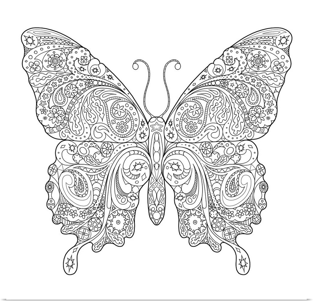 <p>Black and white line art of an intricately designed butterfly.</p>