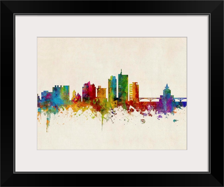 <p>Watercolor art print of the skyline of Cedar Rapids, Iowa, United States</p>