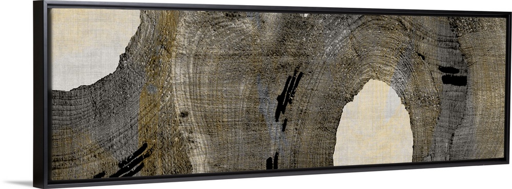 <p>Abstract artwork in brown shades made from cross sections of tree trunks.</p>