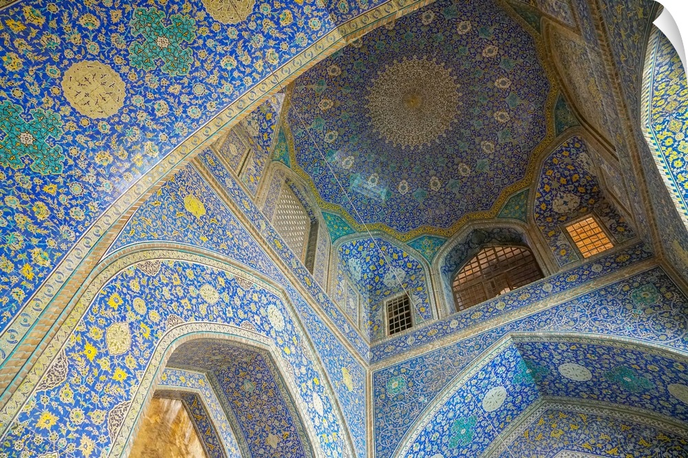 <p>Ceiling of entrance portal in Isfahan blue, Imam Mosque, UNESCO World Heritage Site, Isfahan, Iran, Middle East</p>