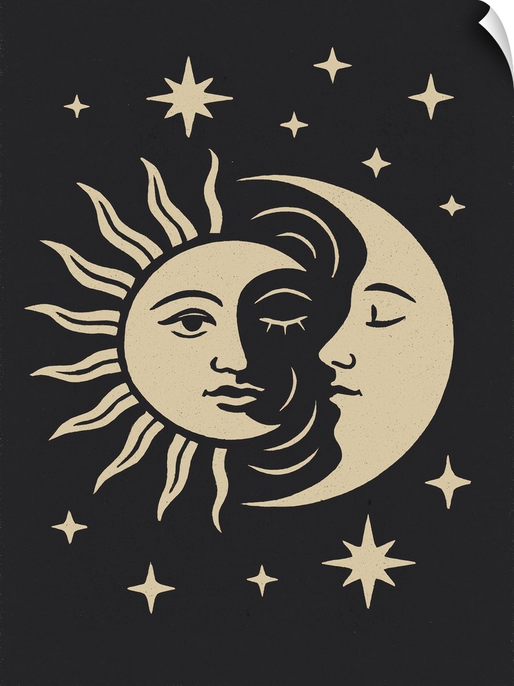 Art Bohemian Treechild Art Black and White Wall Art Decorative Art Graphic Art Moon Stars Sun