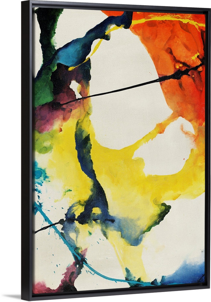 <p>A vertical abstract painting created with puddles of wet paint and streaky stains to create a multicolor swirling movement in this decorative wall art.</p>