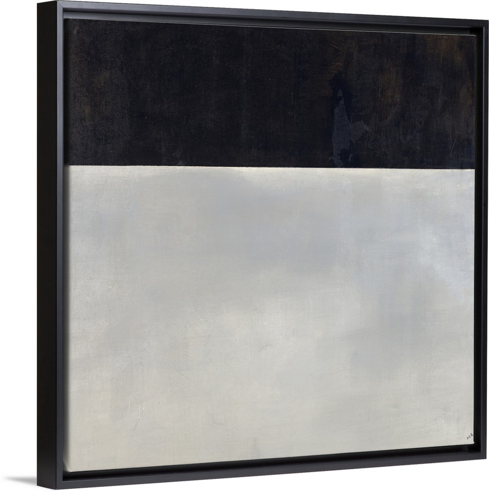 <p>Square abstract painting with a solid black rectangle at the top and fully gray bottom.</p>