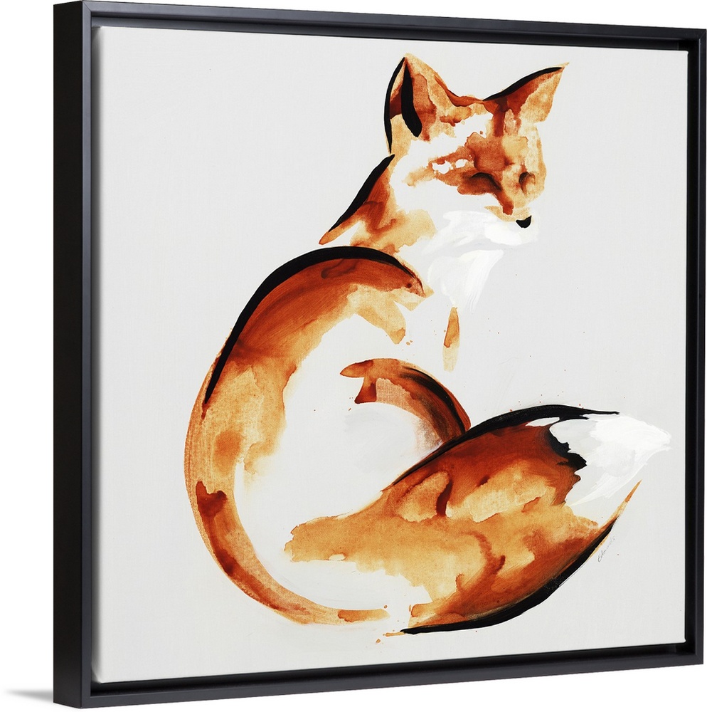 <p>Abstract interpretation of a fox with its body curled around on a gray background.</p>