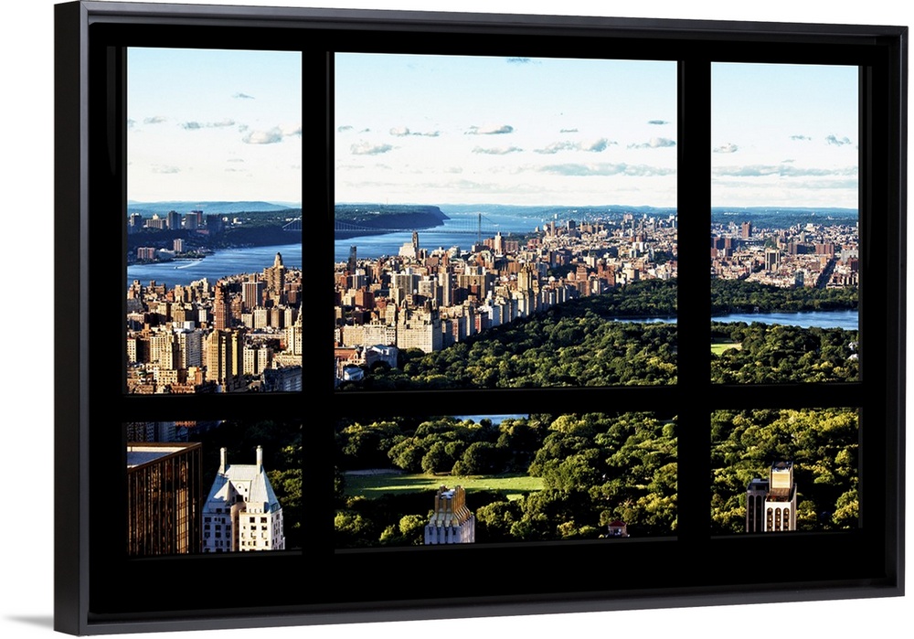 <p>View of Central Park with skyscrapers, with a faux window pane effect.</p>