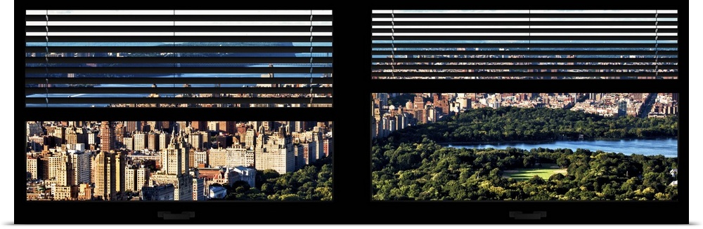 <p>View of Central Park with skyscrapers, with a faux window and blinds effect.</p>