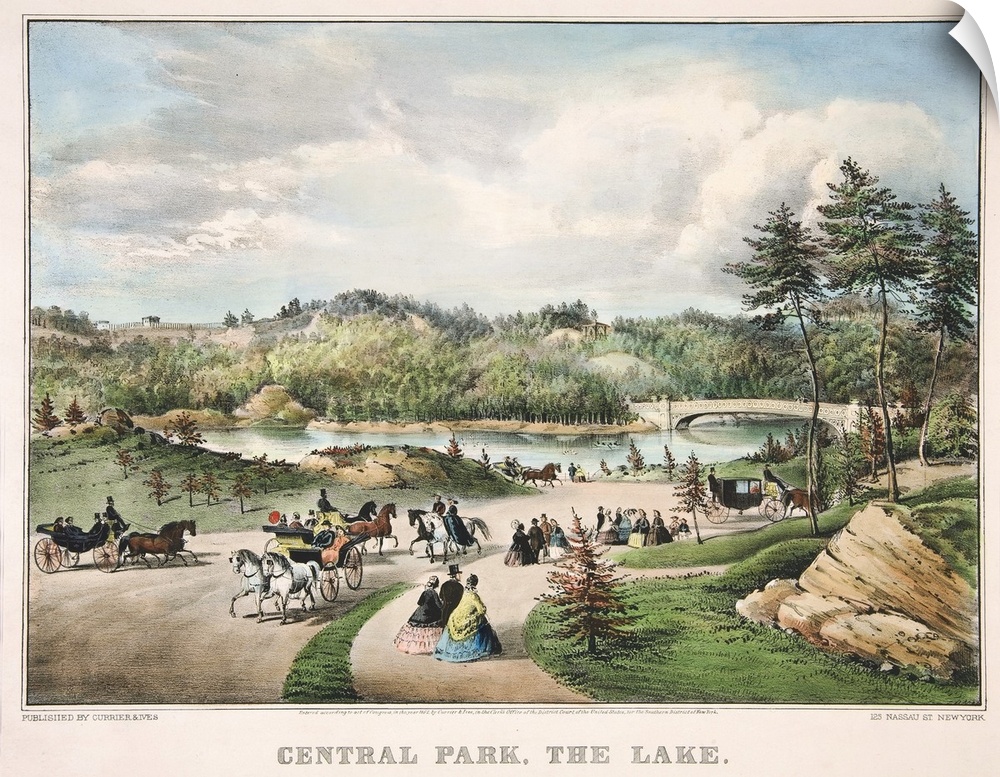 <p>Central Park - The Lake, 1862 (originally hand-coloured lithograph) by Currier, N. (1813-88) and Ives, J.M. (1824-95)</p>
