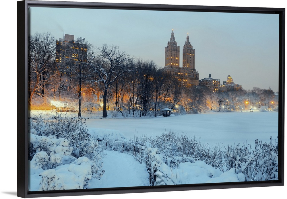 <p>Central Park in winter at night with skyscrapers in midtown Manhattan, New York City.</p>