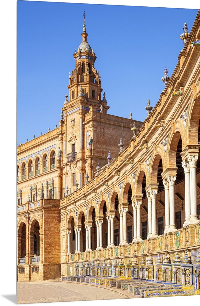 <p>Ceramic alcoves and arches of the Plaza de Espana, Maria Luisa Park, Seville, Andalusia, Spain, Europe</p>