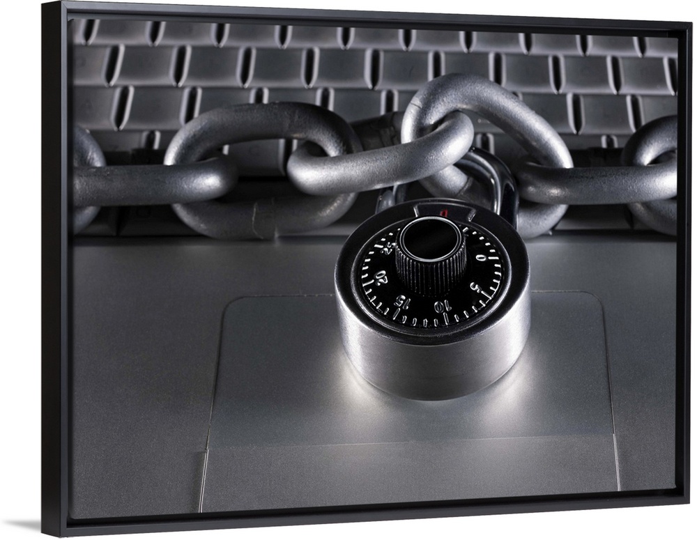 <p>Chain and lock on laptop computer</p>