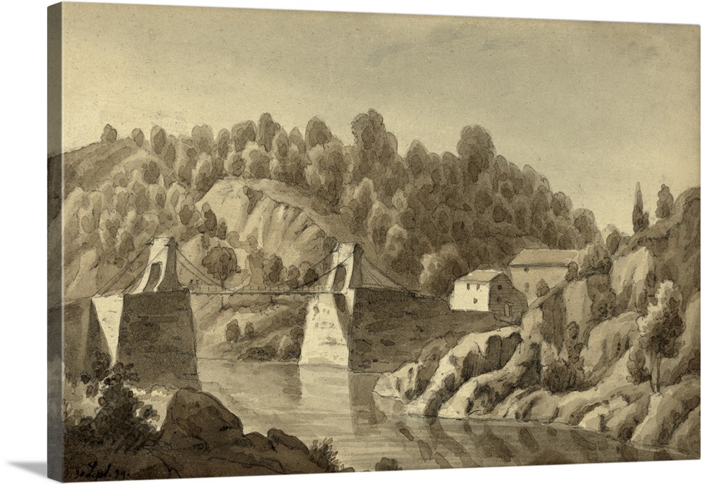 Bridge Art Classic Art Romanticism Drawing Grey Wall Art Illustrations River, Creek and Stream United States Virginia