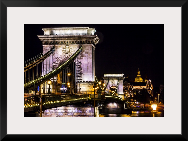 <p>Chain Bridge Saint Stephens Danube River Reflection Budapest Hungary.</p>