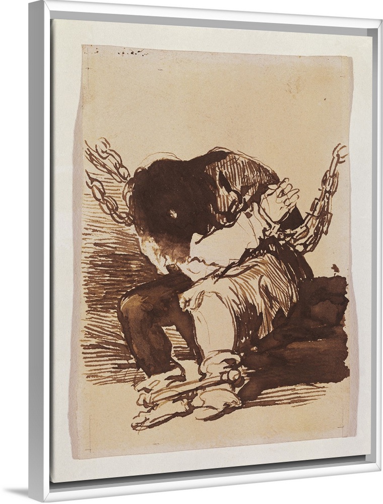 <p>GOYA Y LUCIENTES, Francisco de (1746-1828). Chained Prisoner, seated. 1810 - 1820. Drawing for the etching Tan bArbara la seguridad como el delito. Romanticism. Drawing. SPAIN. Madrid. Prado Museum. -</p>