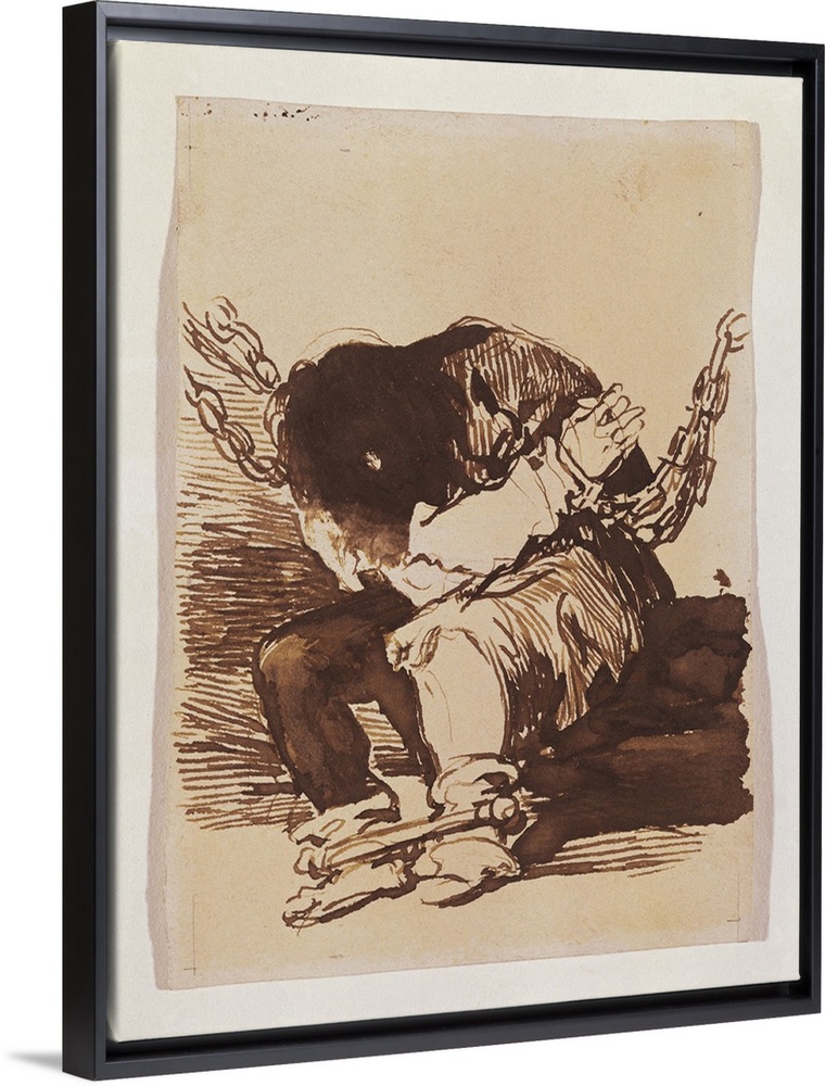 <p>GOYA Y LUCIENTES, Francisco de (1746-1828). Chained Prisoner, seated. 1810 - 1820. Drawing for the etching Tan bArbara la seguridad como el delito. Romanticism. Drawing. SPAIN. Madrid. Prado Museum. -</p>
