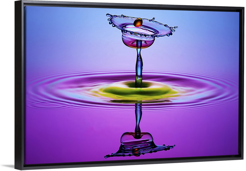 <p>A macro photograph of a tiny water splash caught in mid air and illuminated in vibrant colors.</p>