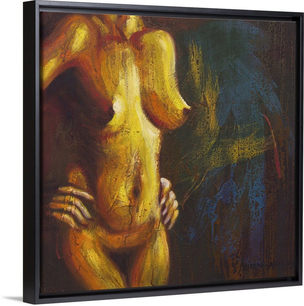 <p>Hand on hips, she strikes a provocative pose. Her challenge awaits a response in this thoughtful portrait by Aricadia. Golden light caresses her nude contours, filling her body with life. Yet uncertain shadows surround the lovely woman.</p>
