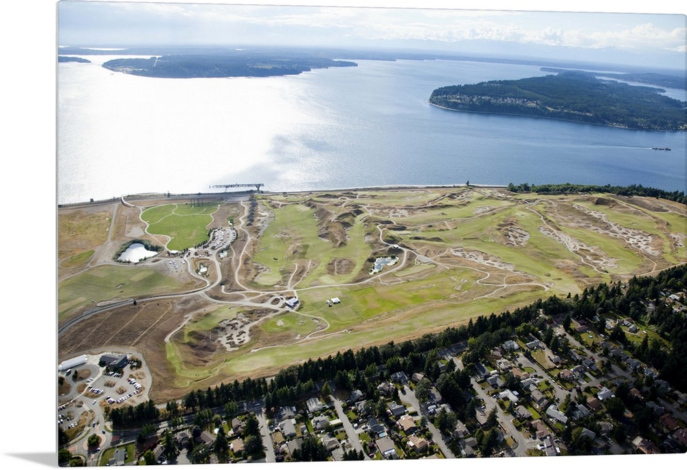 <p>aerial view of Chambers Bay Golf Course, site of the 2015 US Open Championship; University Place, WA near Tacoma</p>
