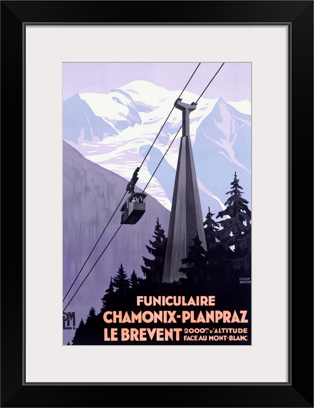 <p>This vertical wall art an Art Deco travel poster of a cable car passing through the Alps with French text on it.</p>