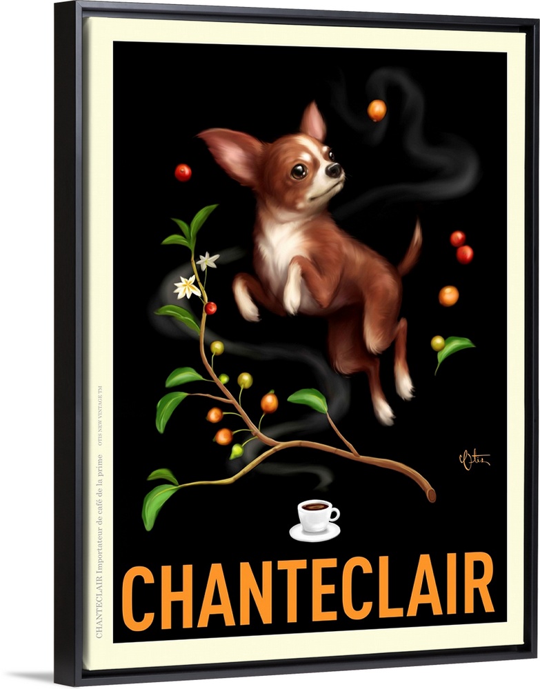 <p>Retro style advertising poster featuring Chihuahua with coffee branch</p>