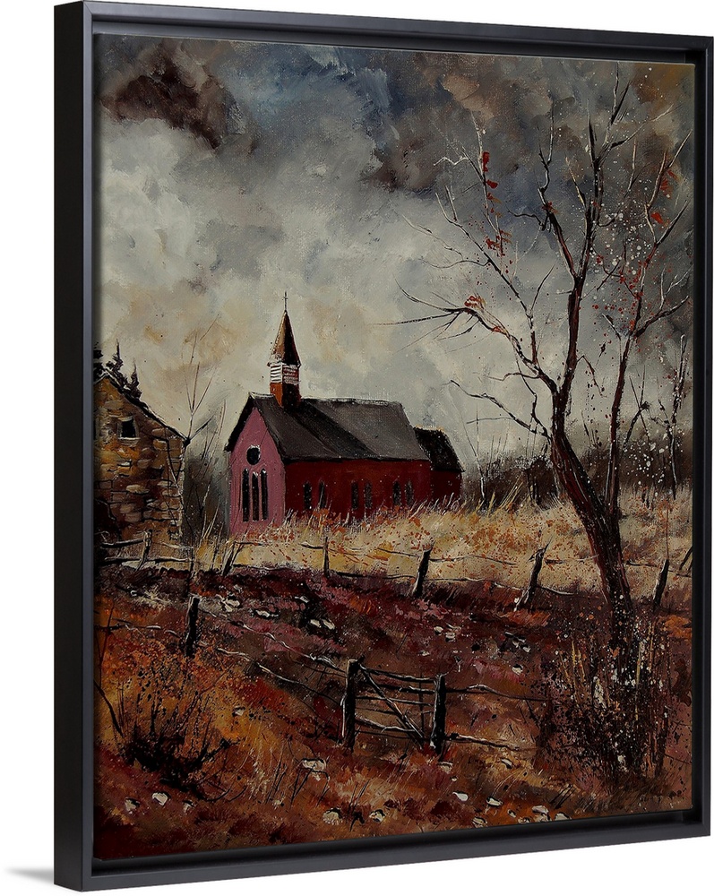 <p>Vertical painting of the Chapel Of Herhet in dark earth tones.</p>