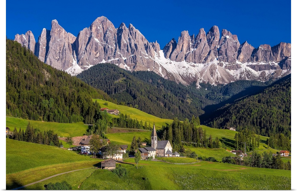 <p>Italy, Dolomites, Val di Funes. Chapel of St. Magdalena in village. Credit: Jim Nilsen</p>