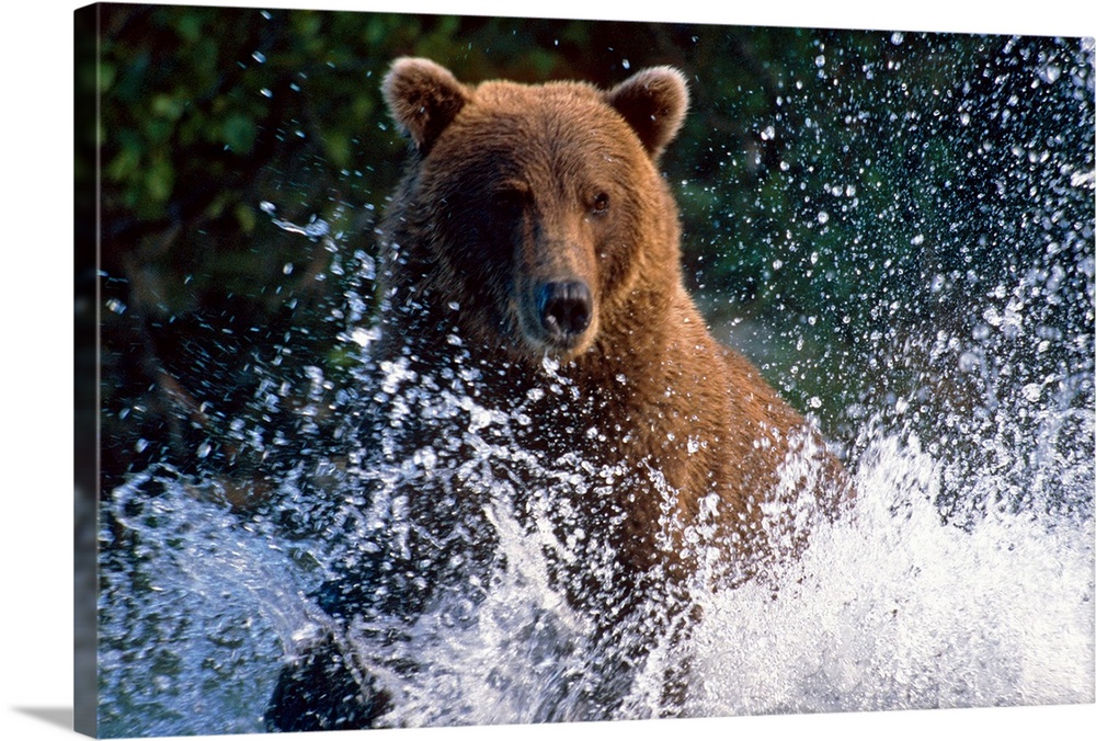 <p>Charging Grizzly splashing through water Shelikof Straight Katmai Nat Park Summer Southwest Alaska</p>