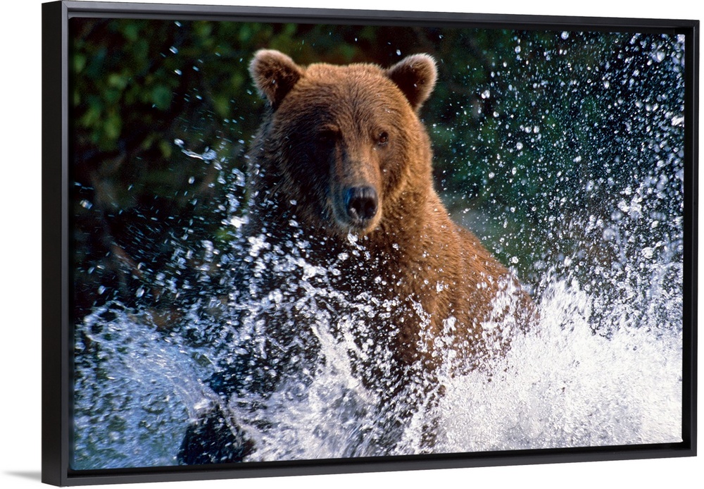 <p>Charging Grizzly splashing through water Shelikof Straight Katmai Nat Park Summer Southwest Alaska</p>
