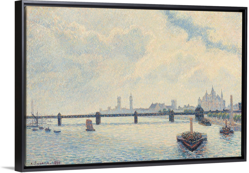 Bridge Art Blue Wall Art Classic Art Classic Art by Period Modern Art Impressionism Classic Art by Subject Rivers, Lakes and Oceans Seascapes Painting Camille Pissarro London Thames River