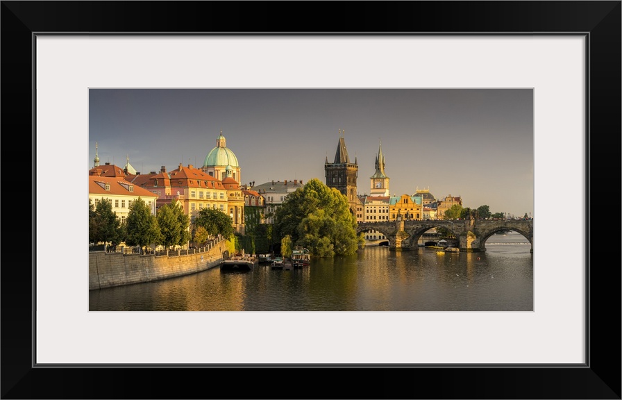 <p>Charles Bridge and Church of Saint Francis of Assisi with Old Town Bridge Tower against dark cloudy sky, Prague, Bohemia, Czech Republic</p>