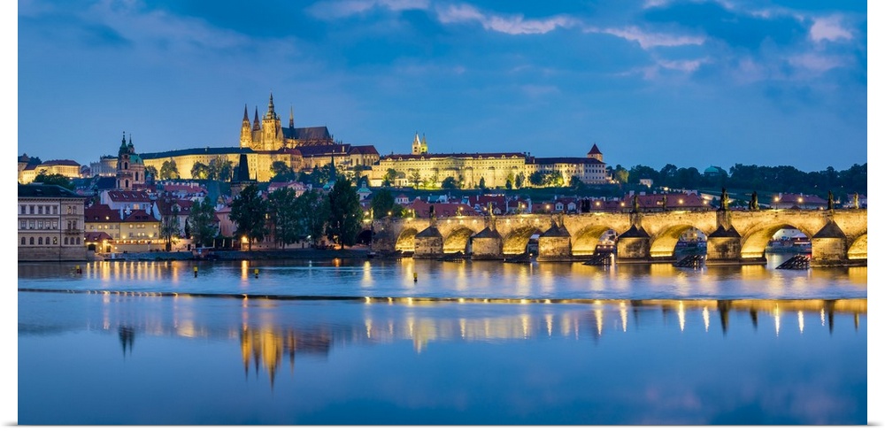 <p>Czech Republic, Prague, Stare Mesto (Old Town). Charles Bridge and Prague Castle, Prazsky Hrad, on the Vltava River at dusk.</p>