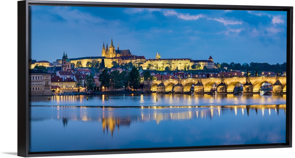 <p>Czech Republic, Prague, Stare Mesto (Old Town). Charles Bridge and Prague Castle, Prazsky Hrad, on the Vltava River at dusk.</p>