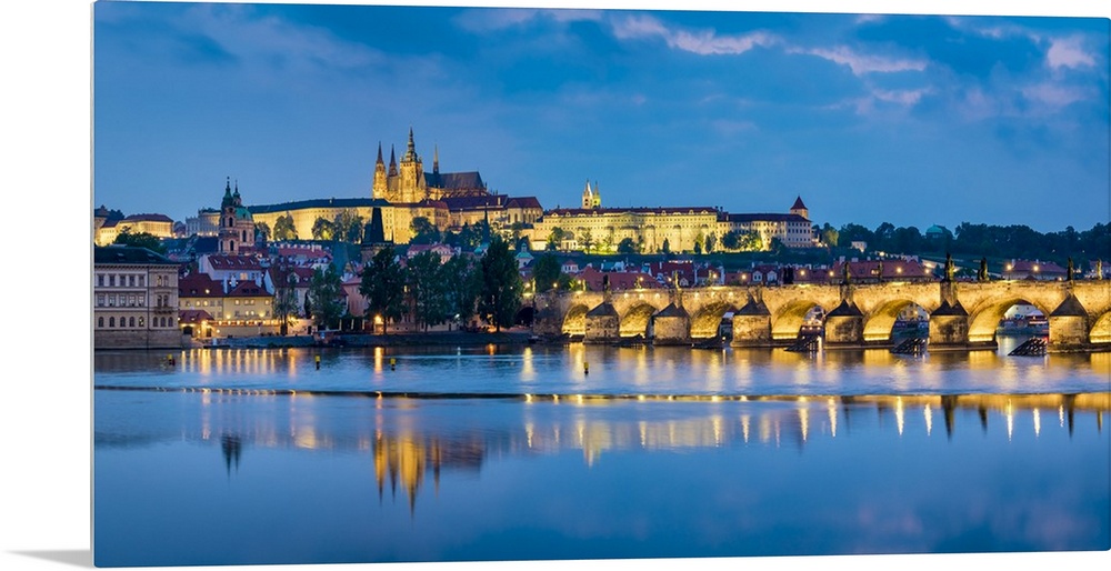 <p>Czech Republic, Prague, Stare Mesto (Old Town). Charles Bridge and Prague Castle, Prazsky Hrad, on the Vltava River at dusk.</p>