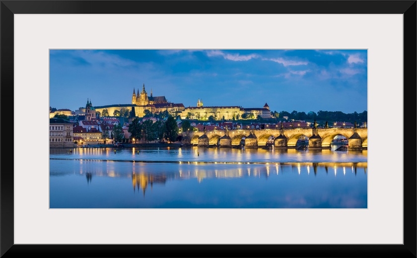 <p>Czech Republic, Prague, Stare Mesto (Old Town). Charles Bridge and Prague Castle, Prazsky Hrad, on the Vltava River at dusk.</p>