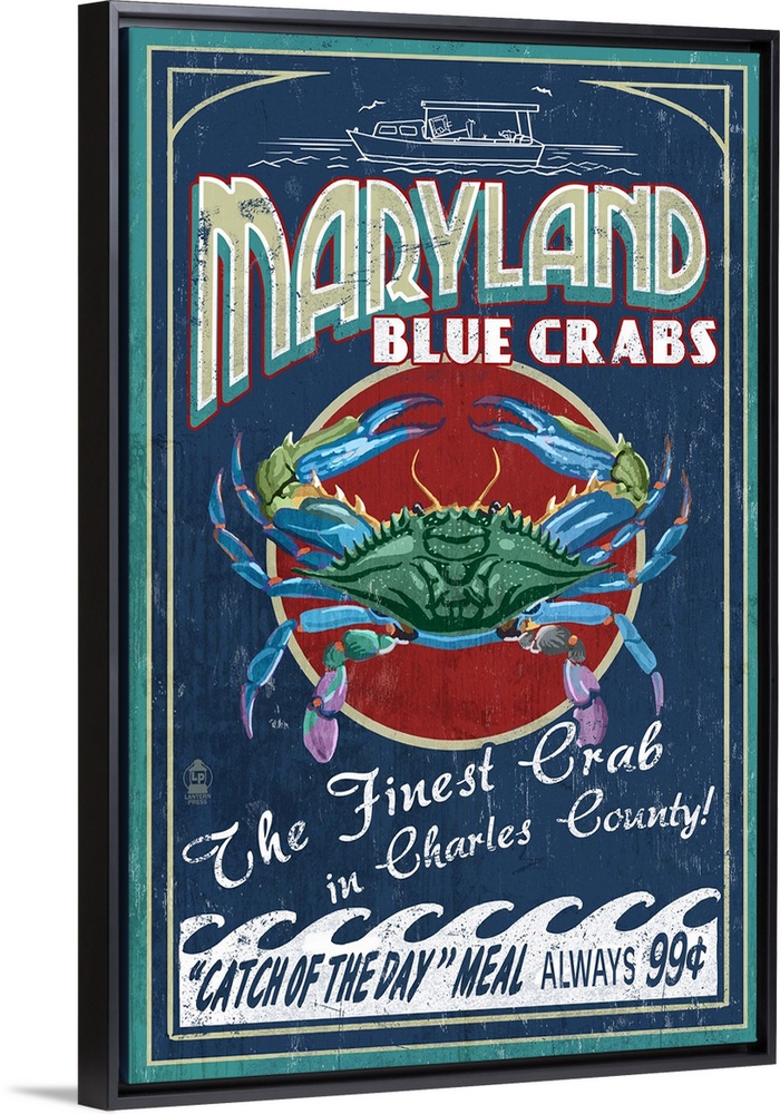 <p>Charles County, Maryland, Blue Crab Vintage Sign</p>