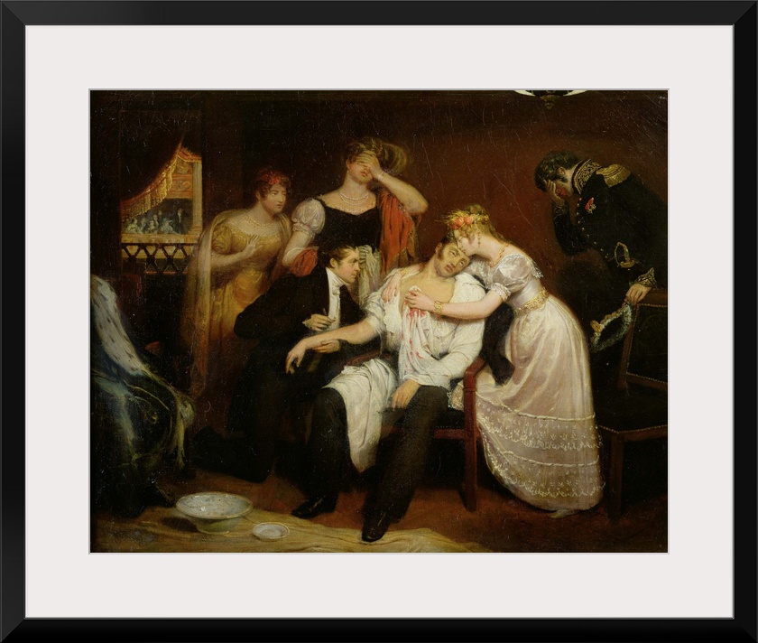 <p>ramene dans sa loge de l'Opera apres avoir ete poignarde; assassinated by a Bonapartist fanatic;</p>