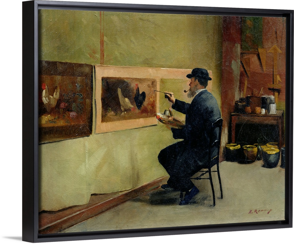 <p>XIR164915 Charles Philippe Gevens, father-in-law of the artist, painting in his studio 21, avenue d'Eylau (oil on canvas) by Renoux, Jules Ernest (1863-1932); Private Collection; (add. info.: Gevens, beau-pere de l'artiste, peignant dans son atelier; today 113 avenue Victor Hugo); Giraudon; French, out of copyright</p>