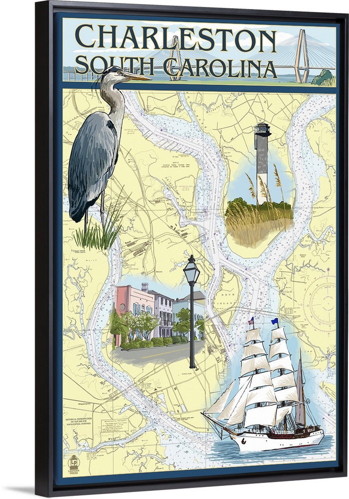 Art Maps Lantern Press South Carolina Charleston Travel Posters Retro Travel Posters