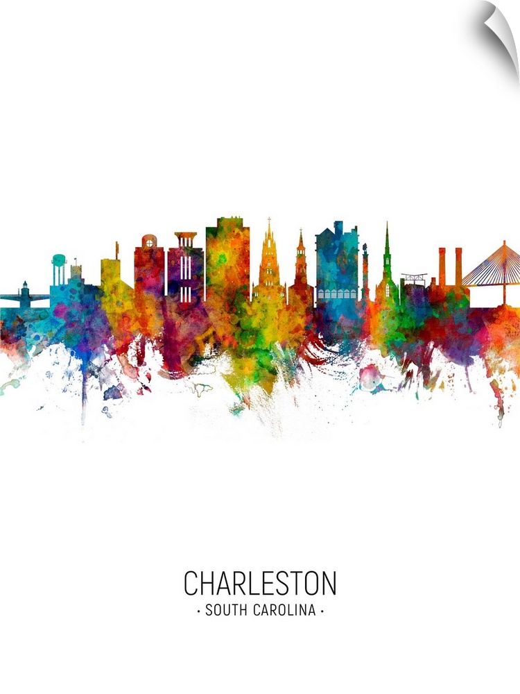 <p>Watercolor art print of the skyline of Charleston, South Carolina, United States</p>