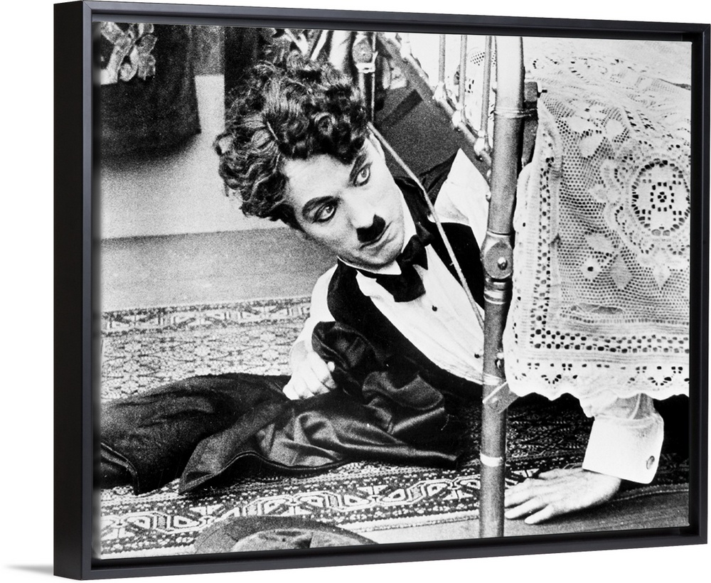 <p>Charles Spencer Chaplin. English comedian. Getting out from under the bed in one of his silent movies from the 1920s.</p>
