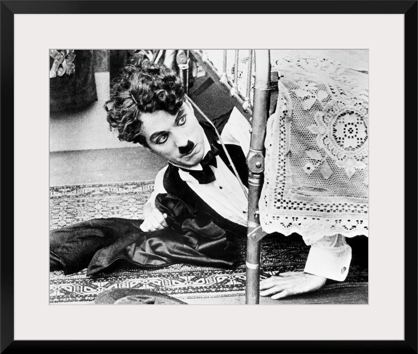 <p>Charles Spencer Chaplin. English comedian. Getting out from under the bed in one of his silent movies from the 1920s.</p>