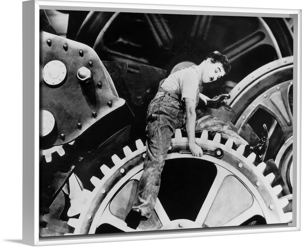 <p>Charlie Chaplin in a scene from the film 'Modern Times,' 1936.</p>