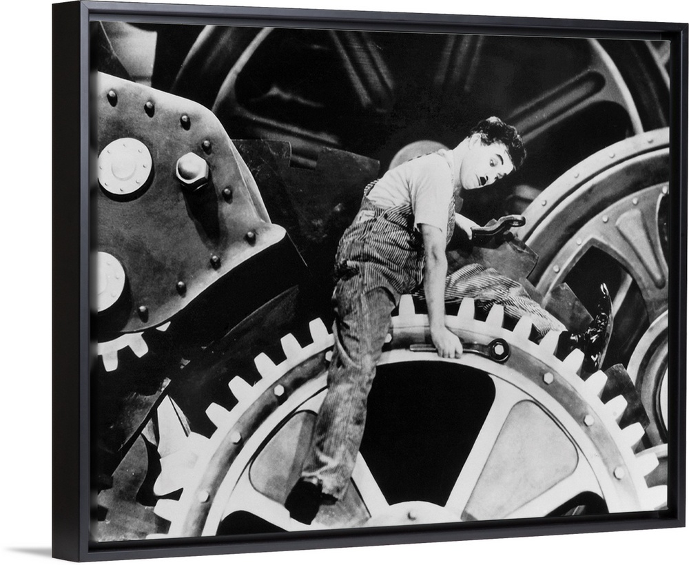 <p>Charlie Chaplin in a scene from the film 'Modern Times,' 1936.</p>