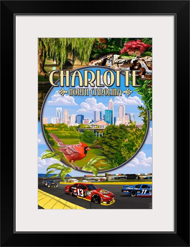 Art Lantern Press North Carolina Charlotte Race Cars Travel Posters Retro Travel Posters