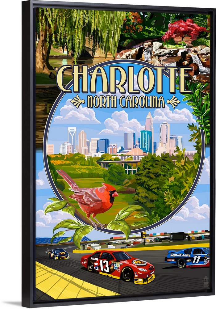 Art Lantern Press North Carolina Charlotte Race Cars Travel Posters Retro Travel Posters