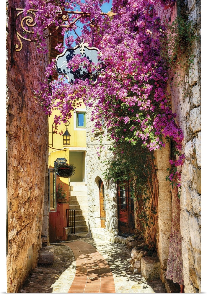 <p>View of a narrow Medieval Street with Blooming Flowers, Eze Village, Alpes Maritimes, Cote d'Azur, France</p>