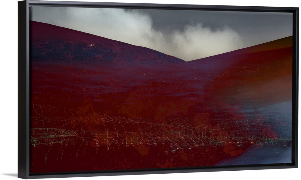 <p>Photograph of an abstract landscape with rusted red hills and light trails, created with multiple exposures and layers.</p>